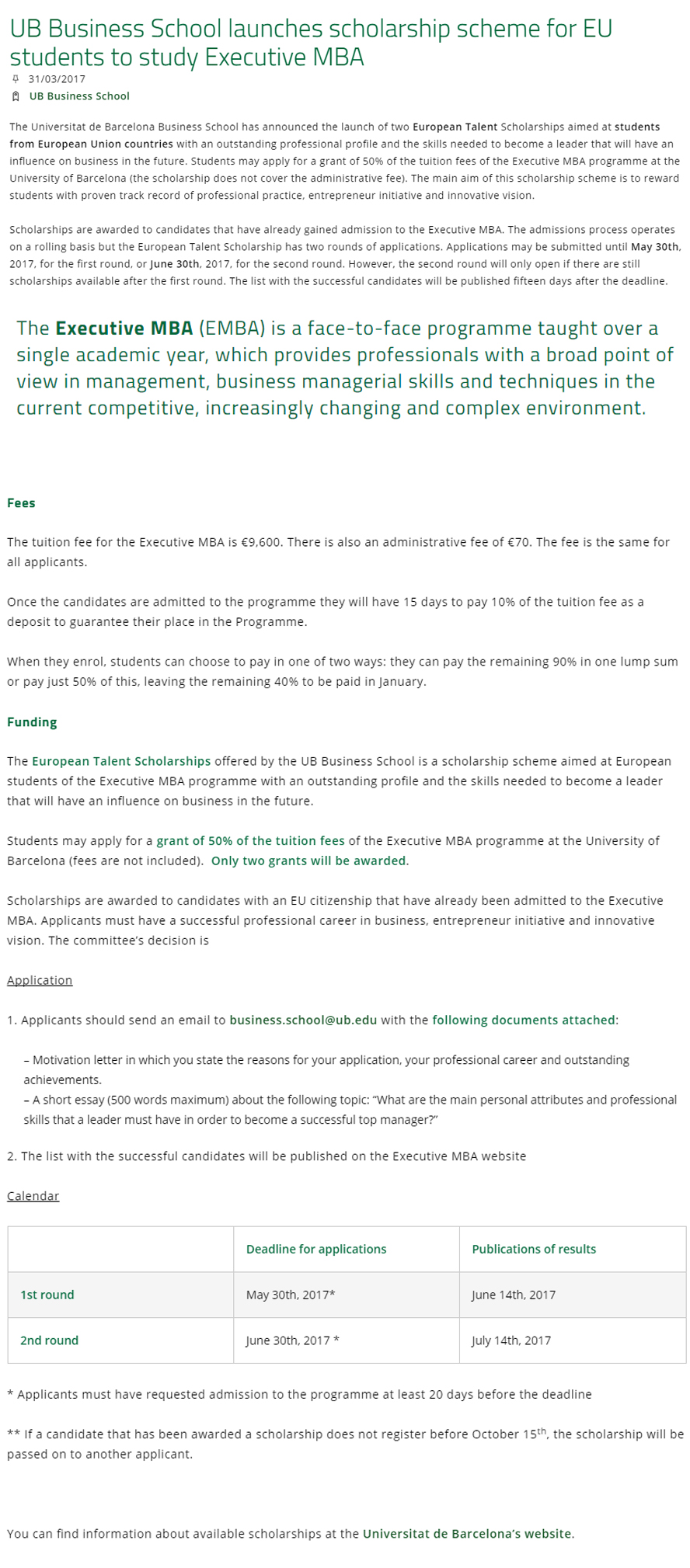 EXECUTIVE MBA ENTRANCE SCHOLARSHIPS